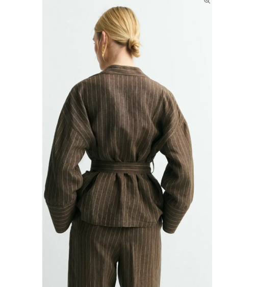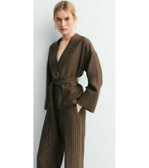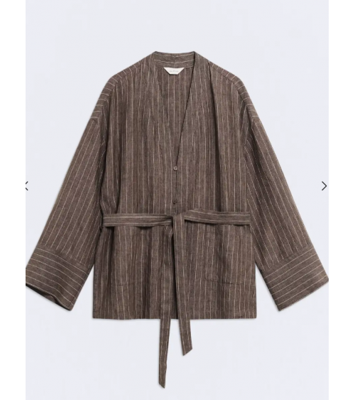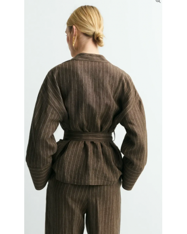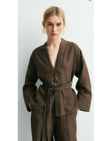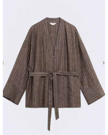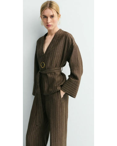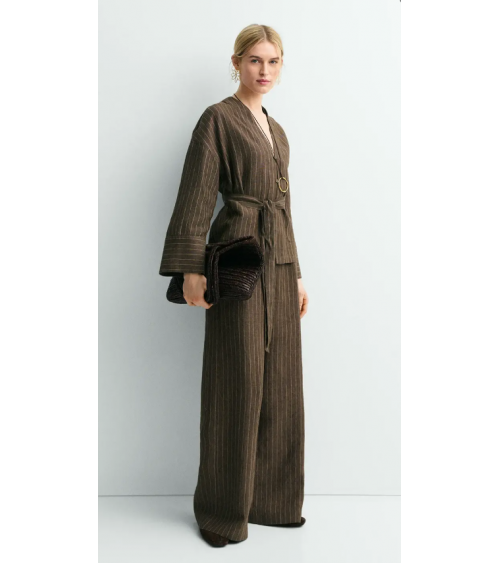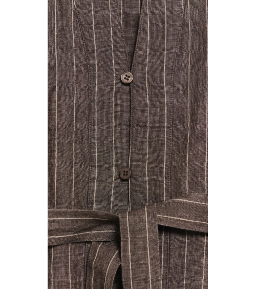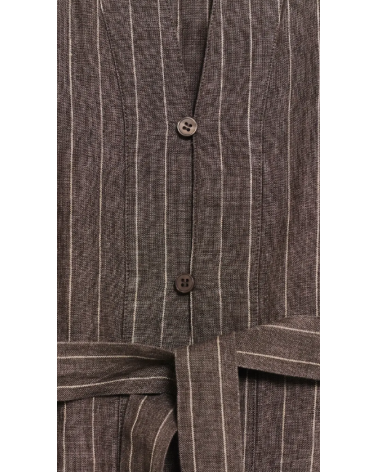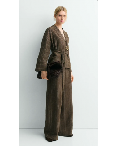 Kimono marrón con rayas lino cierre central cinturón ESEOESE