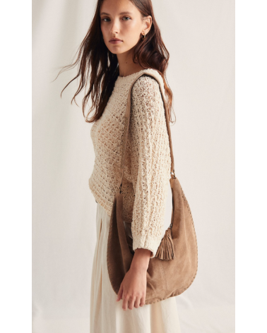 Jersey capa de manga larga y escote redondo. Confeccionado en un tejido rústico semi abierto.