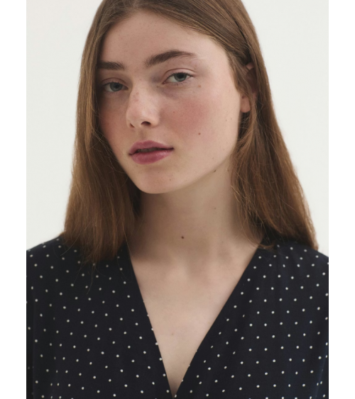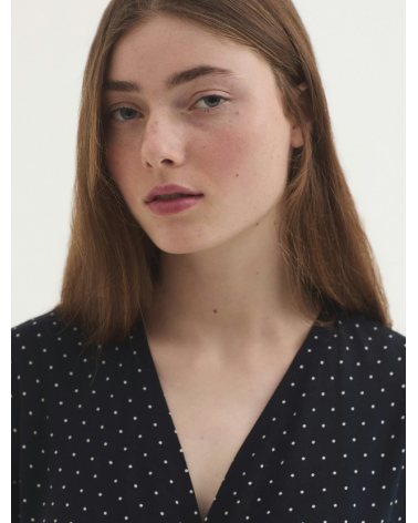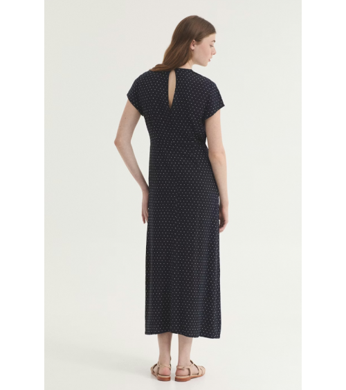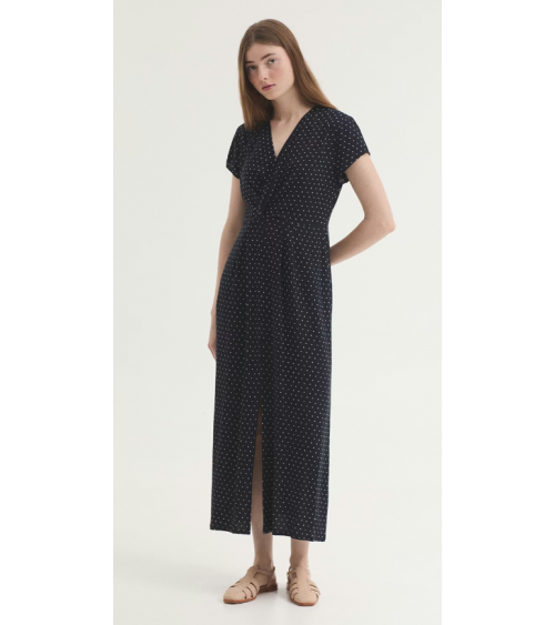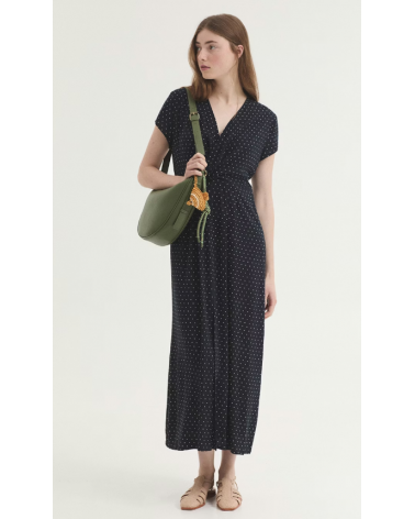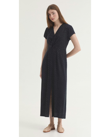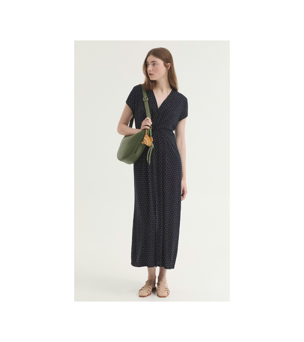 Vestido largo marino small dots escote pico manga corta NICE THINGS