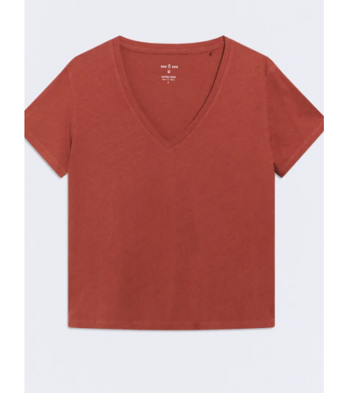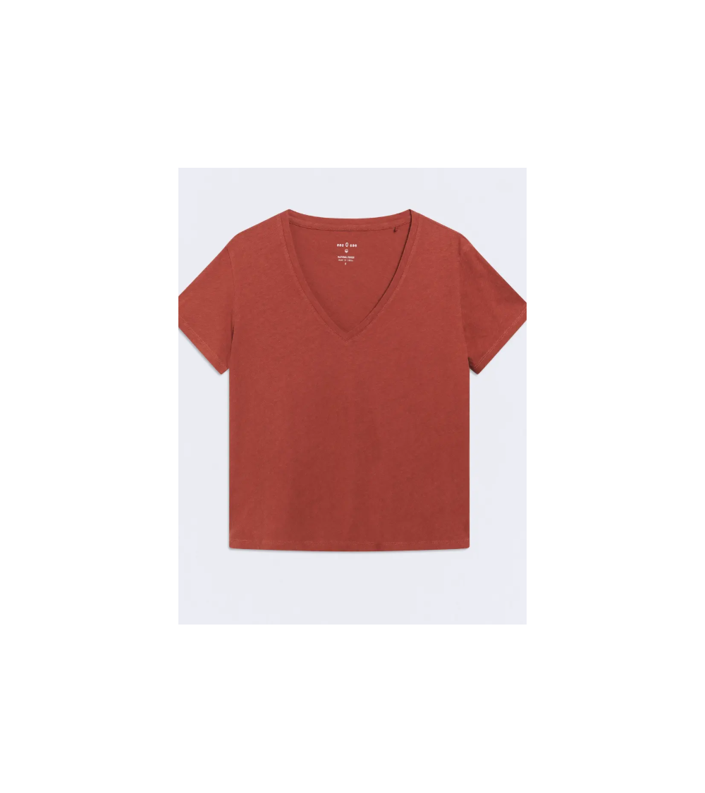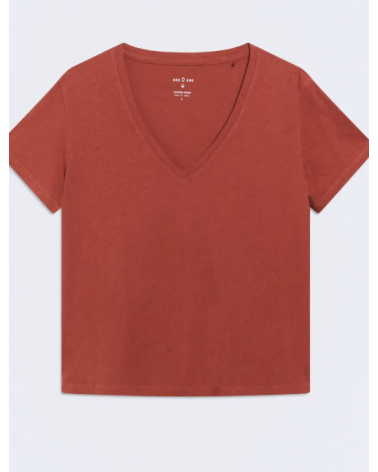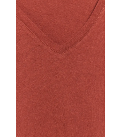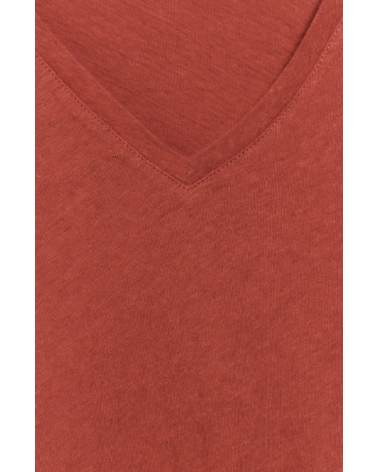 Camiseta terracota algodón/lino manga corta escote pico ESEOESE