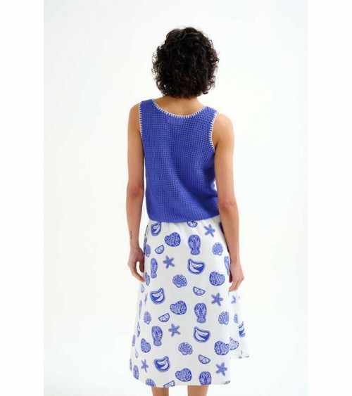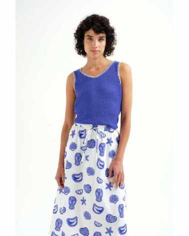 Top azulón ribete crudo sin mangas cuello redondo COMPAÑÍA FANTÁSTICA