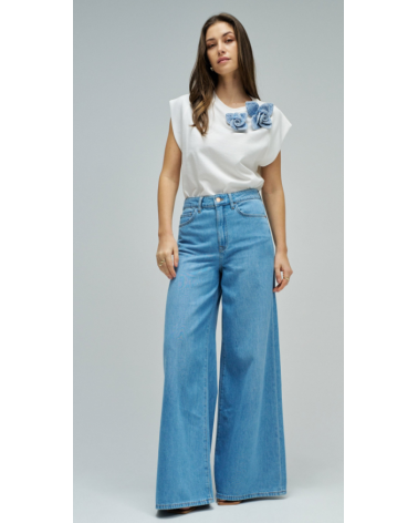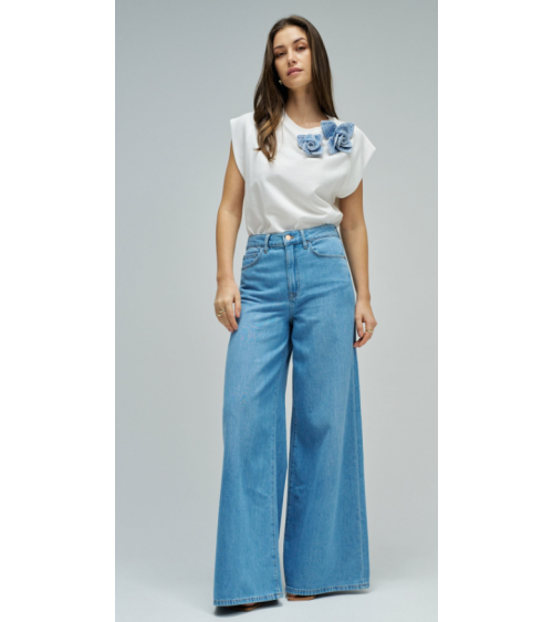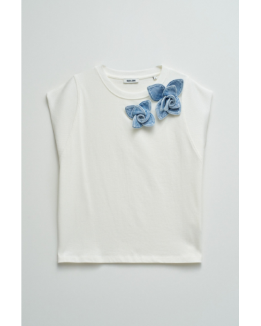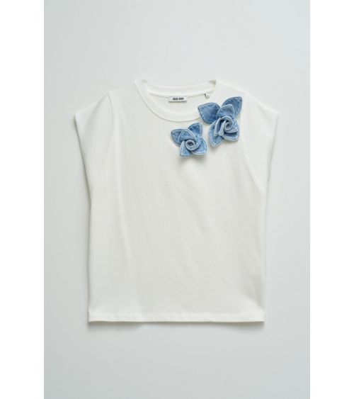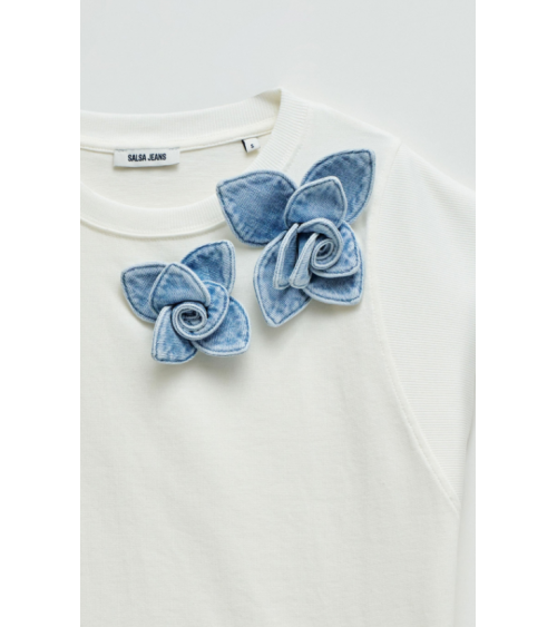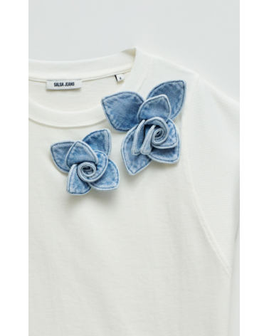 Camiseta manga corta escote redondo aplique floras denim SALSA JEANS