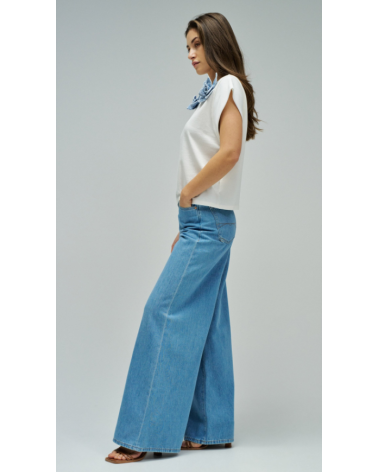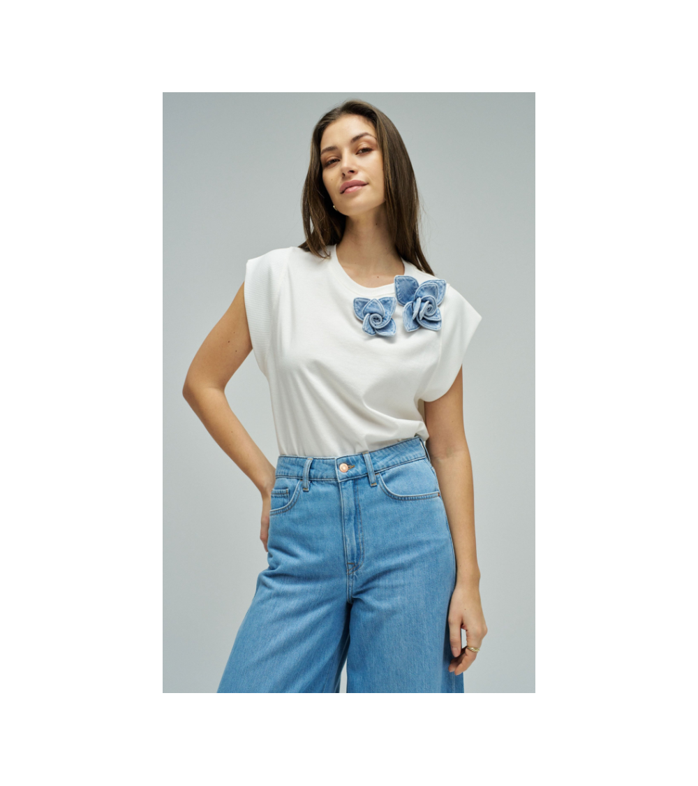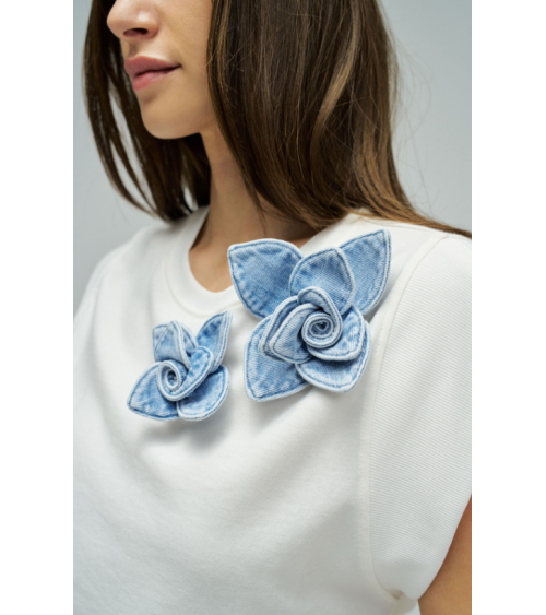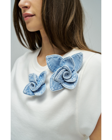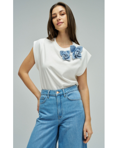 - Camiseta con aplique floral en denim