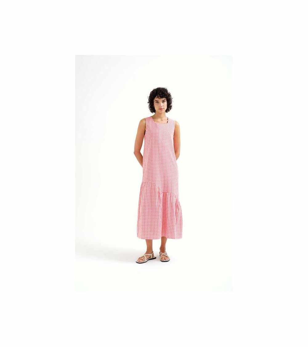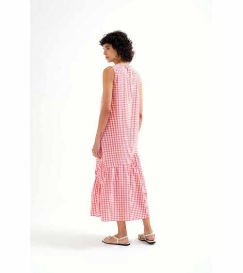 Vestido midi vichy rojo volante bajo sin mangas COMPAÑÍA FANTÁSTICA