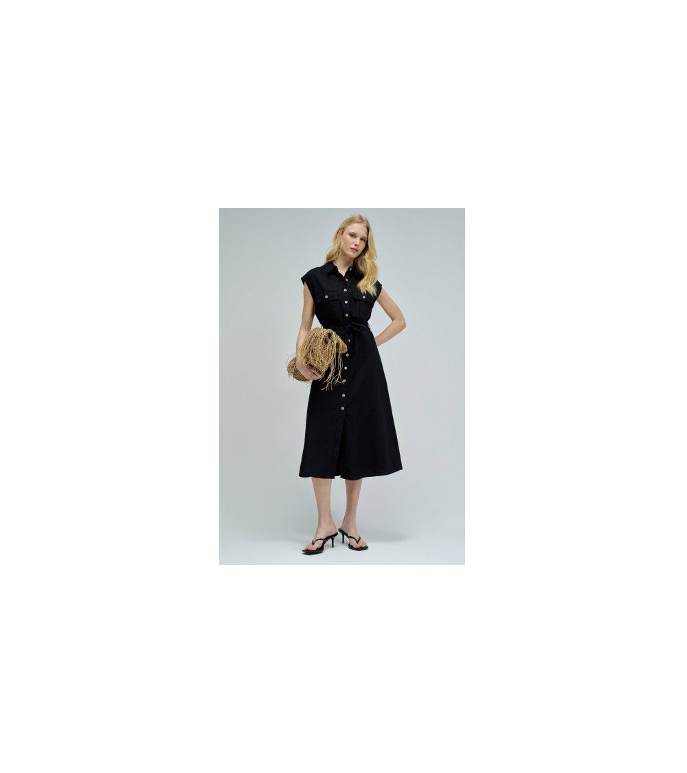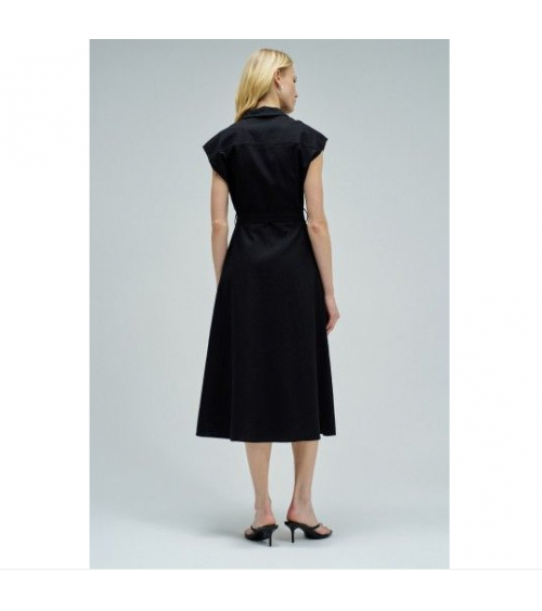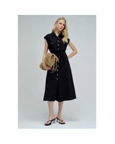 Vestido midi negro lino sin magas camisero SALSA JEANS
