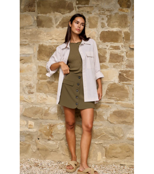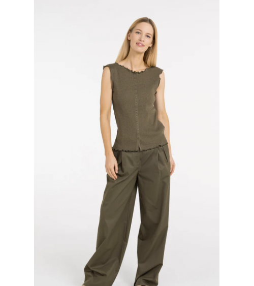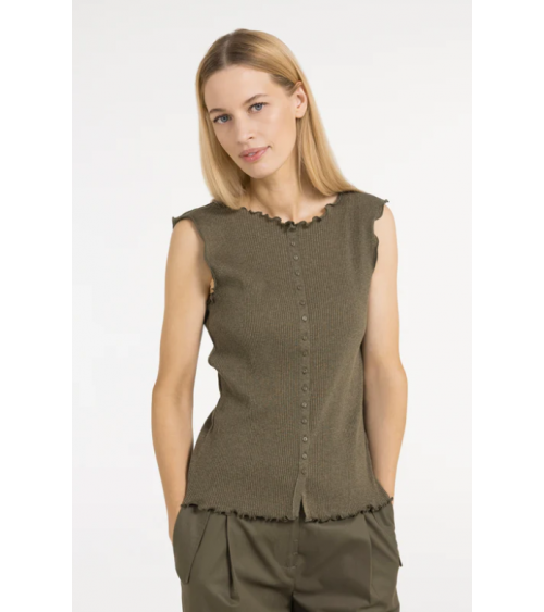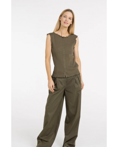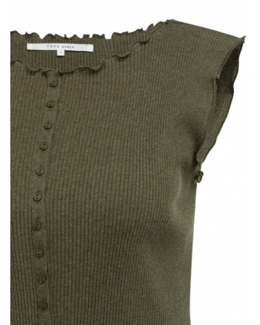 Top militar sin mangas textura acanalada escote redondo YAYA WOMAN