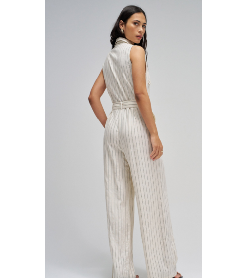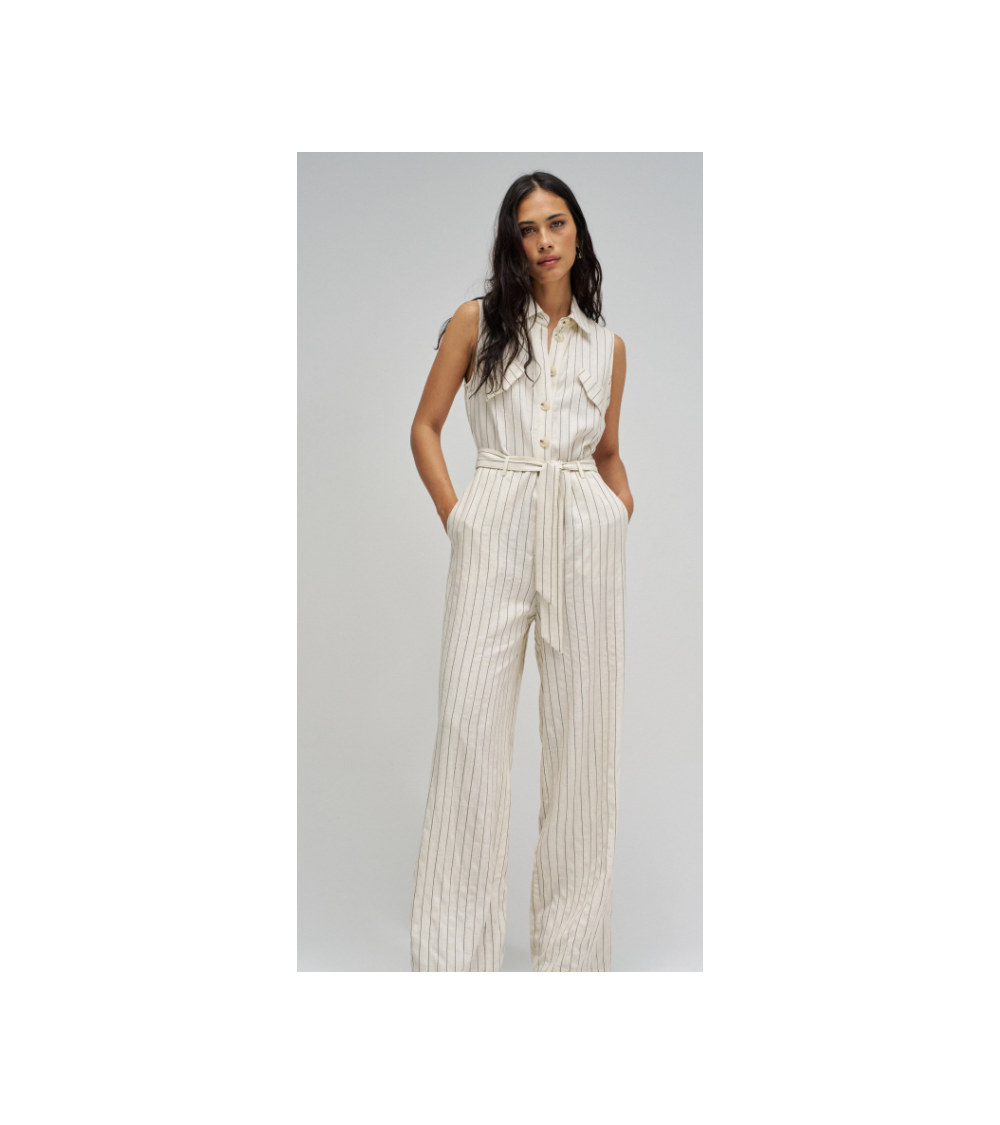Mono natural raya diplomática negra lino pierna wide cinturón SALSA JEANS