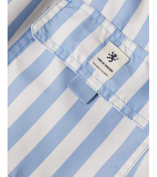 Bañador rayas celeste/crudo bolsillos laterales y trasero LION OF PORCHES
