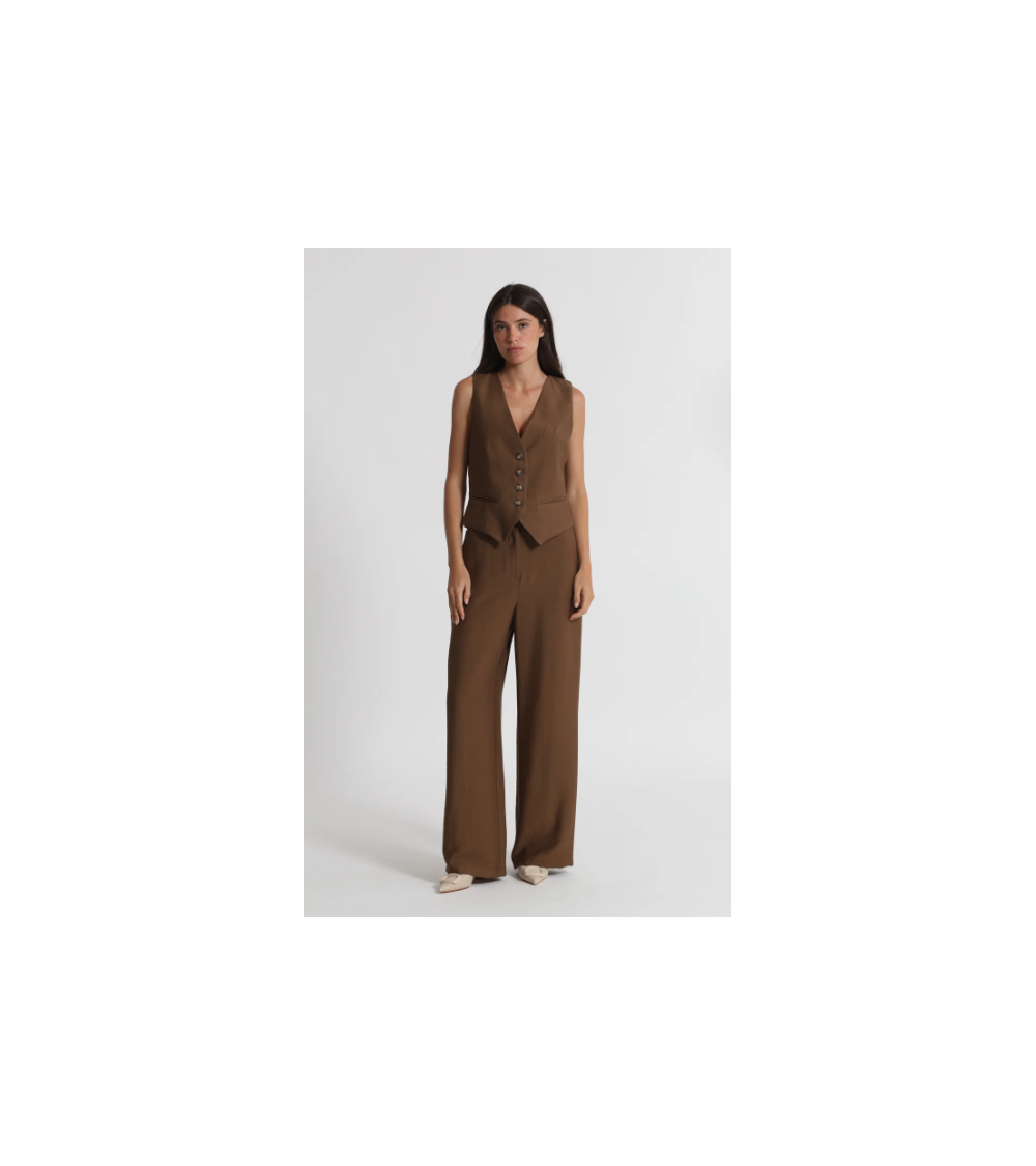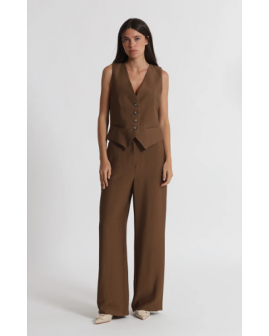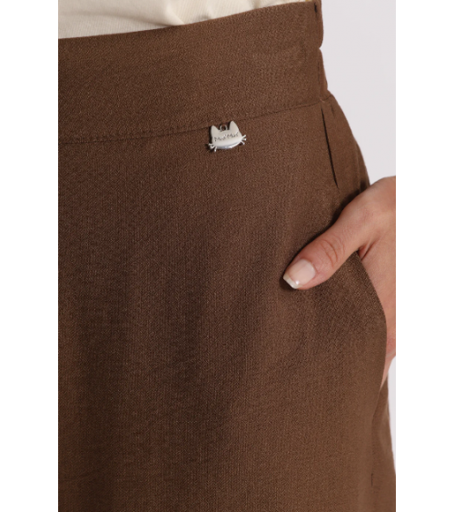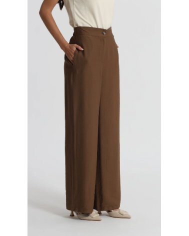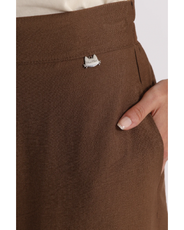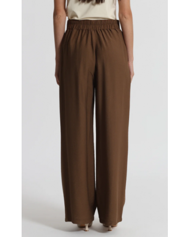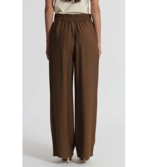 Pantalón marrón largo pierna recta elástico trasero MIMI-MUA