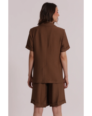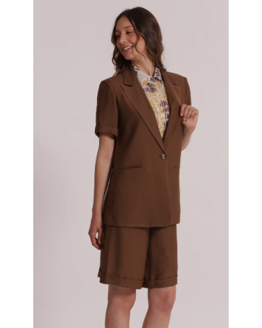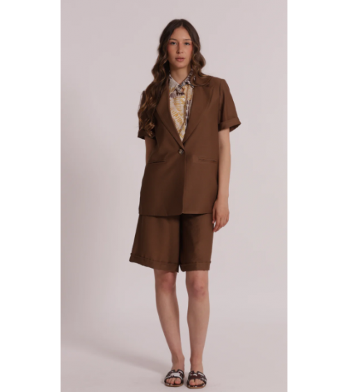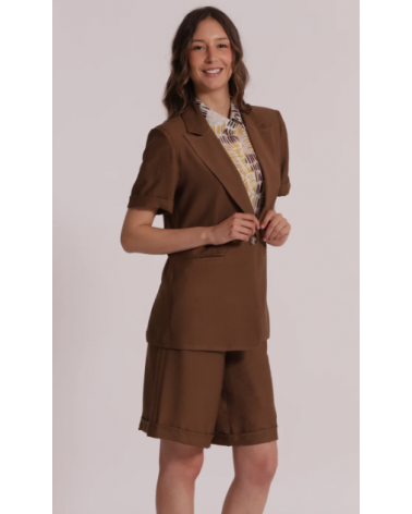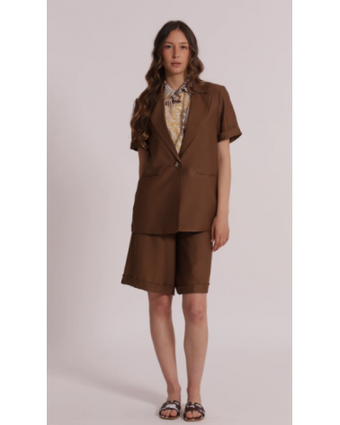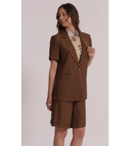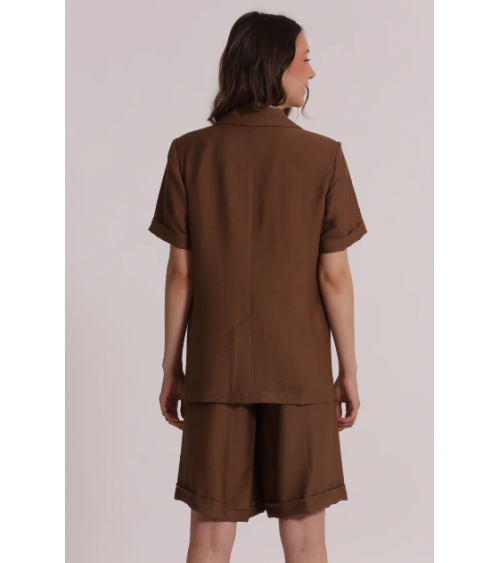 Blazer marrón manga corta solapas cierre botón MIMI-MUA