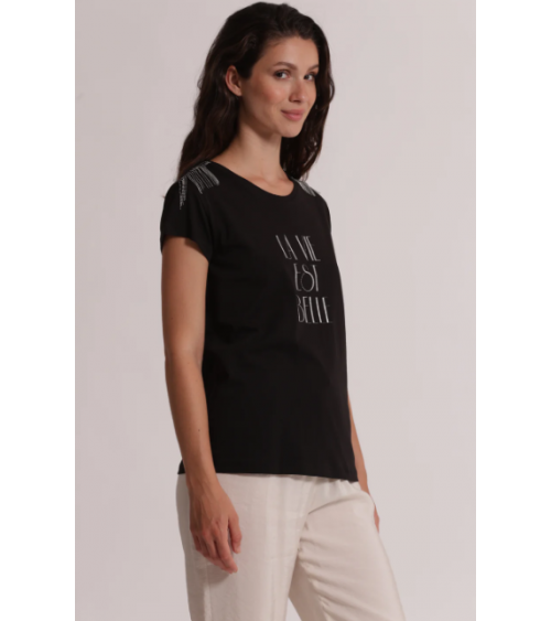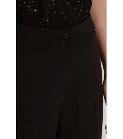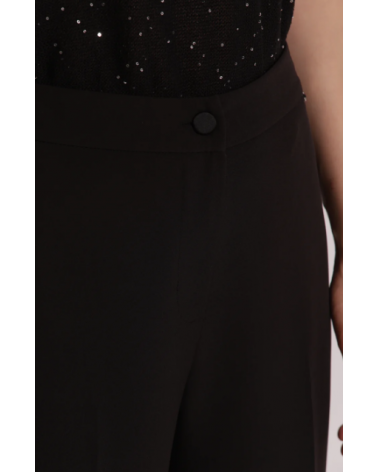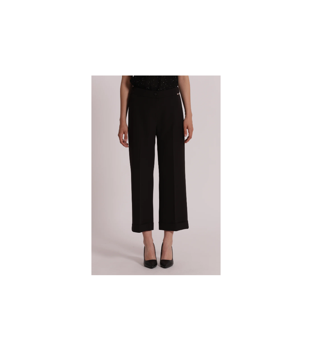 Pantalón negro crop vuelta botón cremallera elástico trasero MIMI-MUA