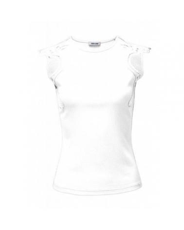Top blanco canalé sin mangas encaje cuello redondo SALSA JEANS