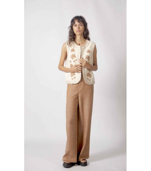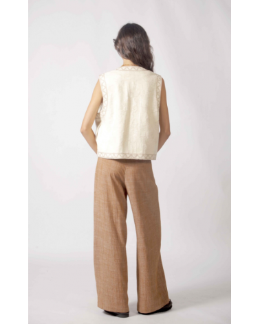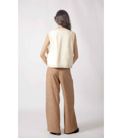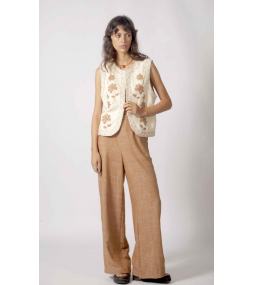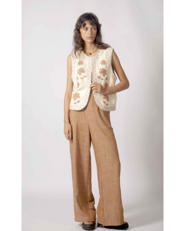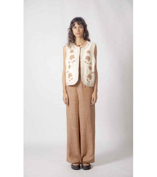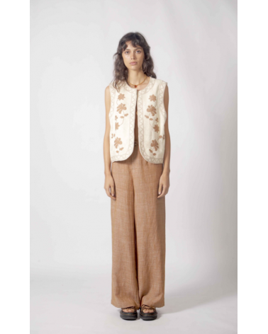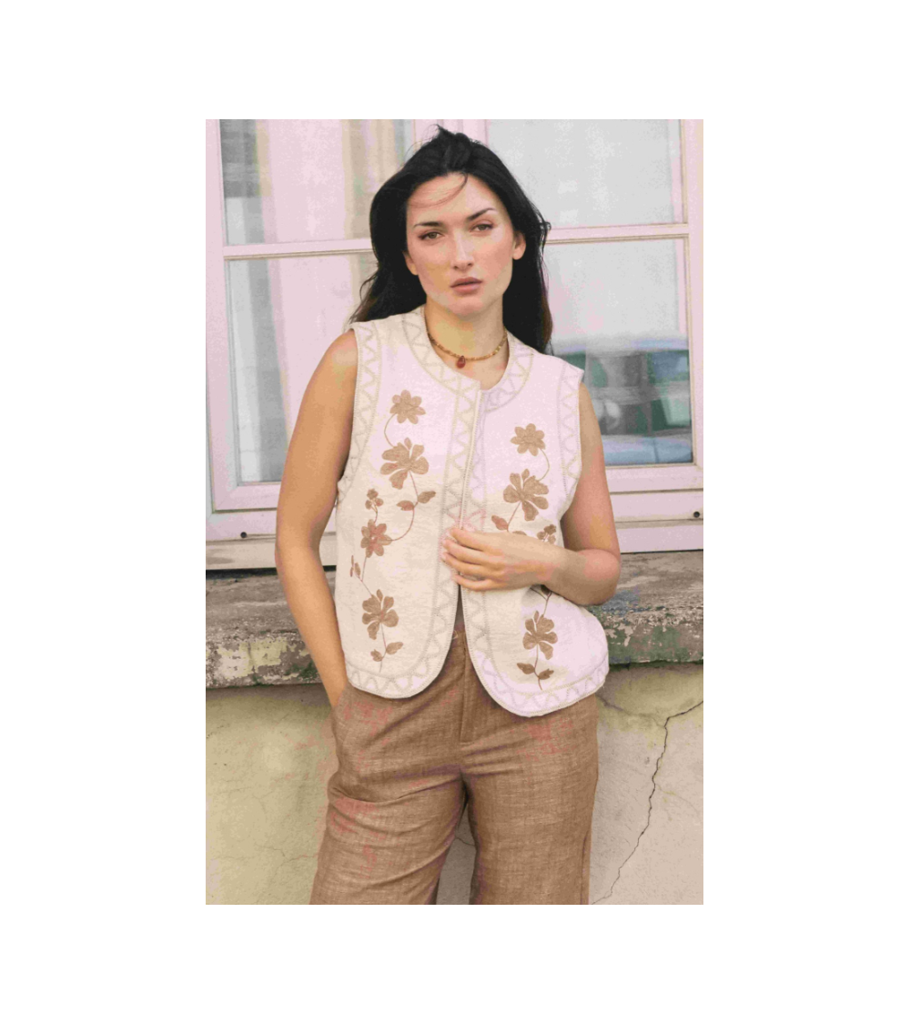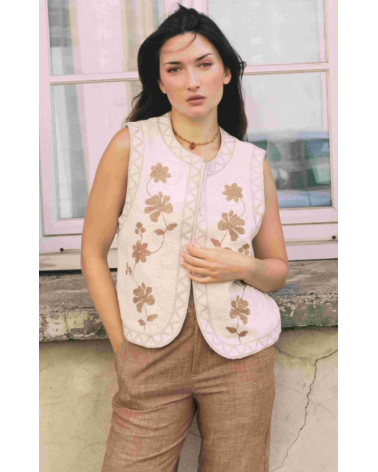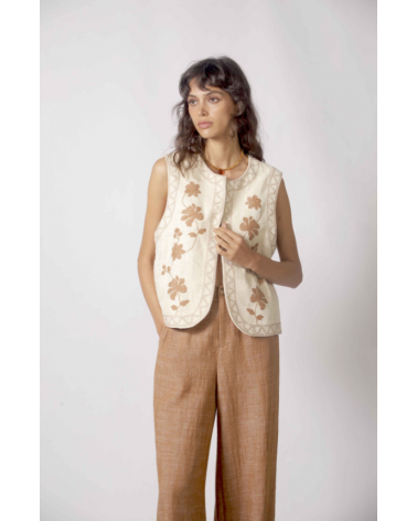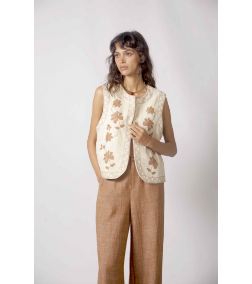 Chaleco en tono naturales de algodón y lino bordado flores THE KORNER