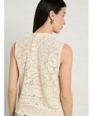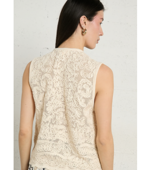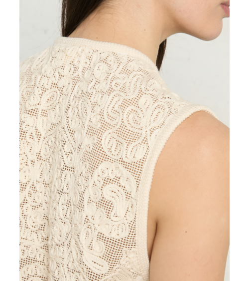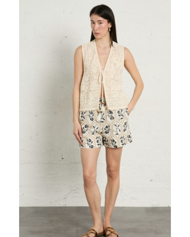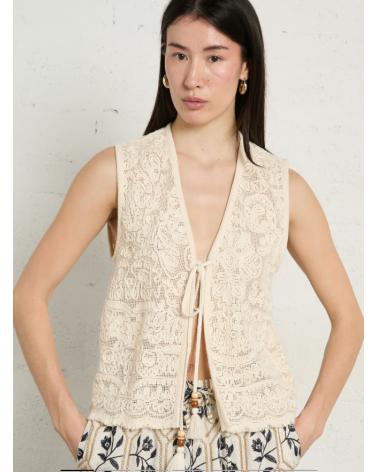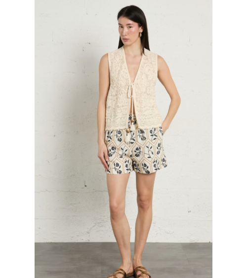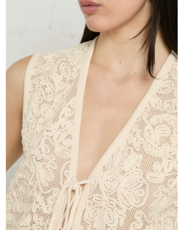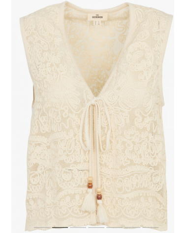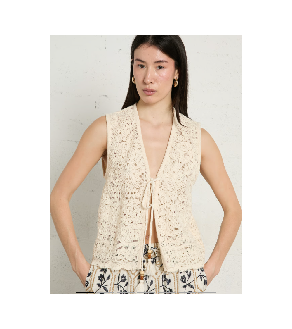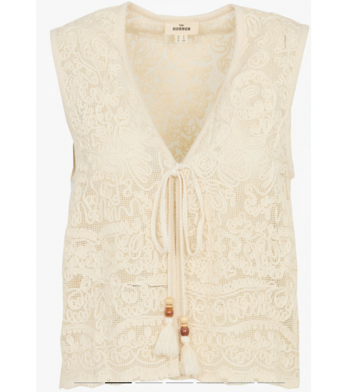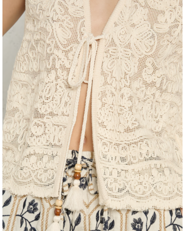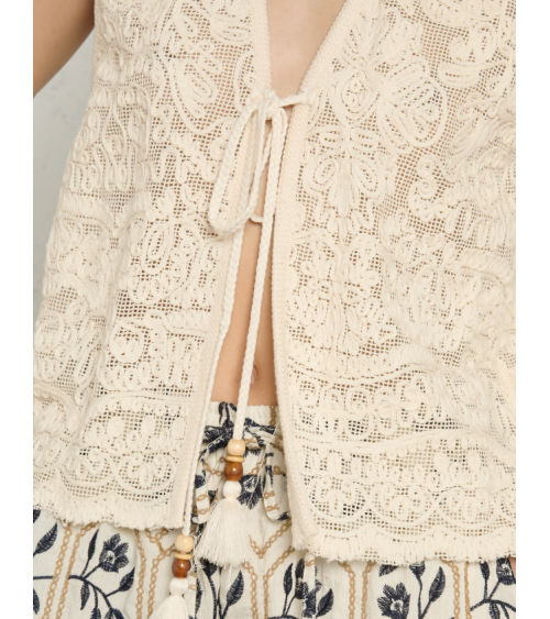 Chaleco crema bordado algodón lazos con abalorios THE KORNER