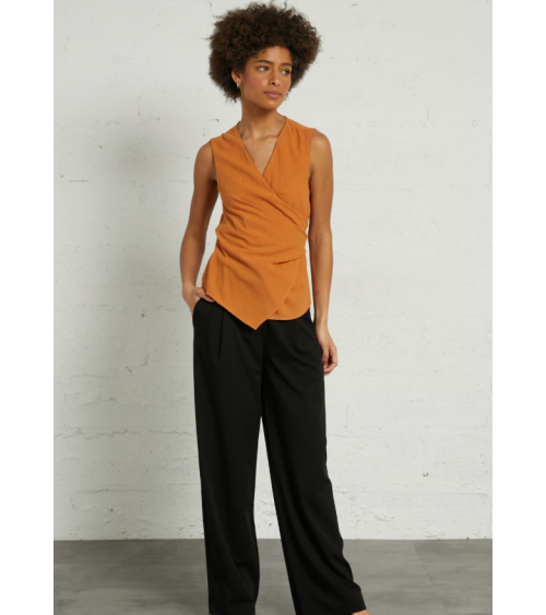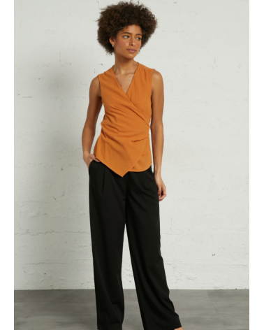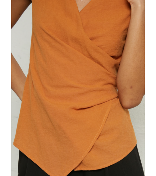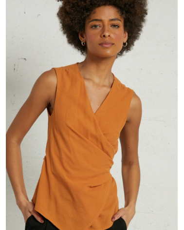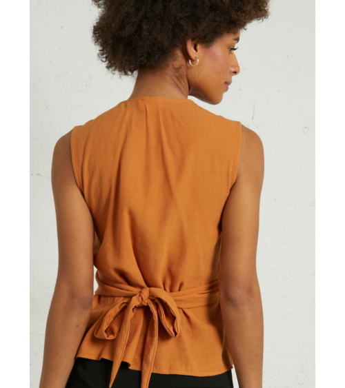 Top ocre cruzado atar escote V sin mangas THE KORNER