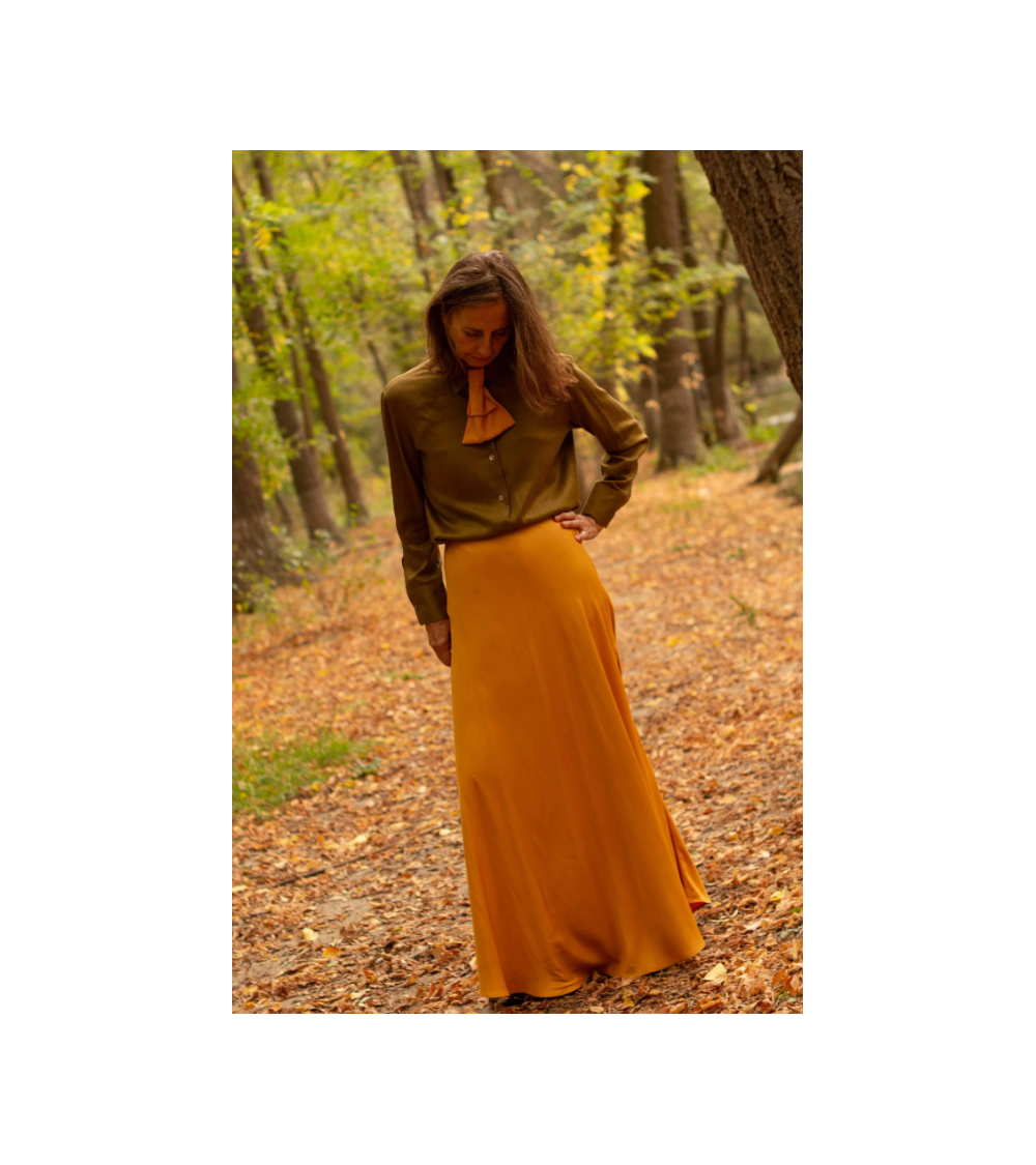 Falda capa en color ocre larga. A juego con el top de la marca.