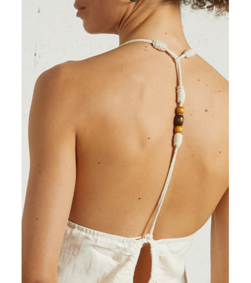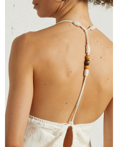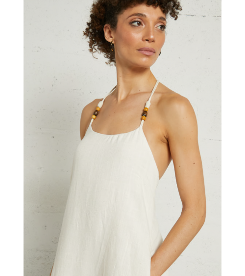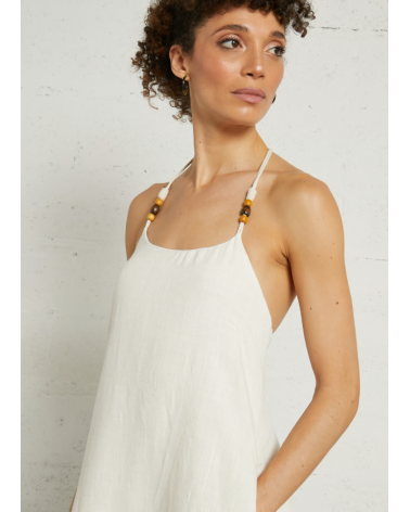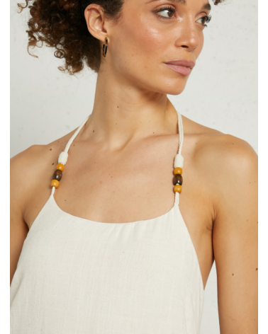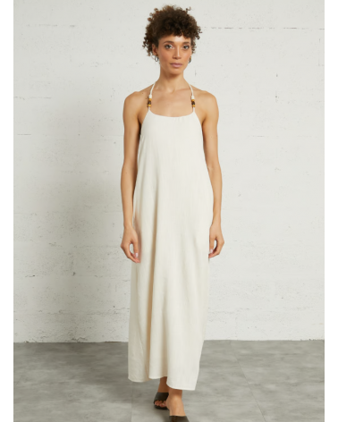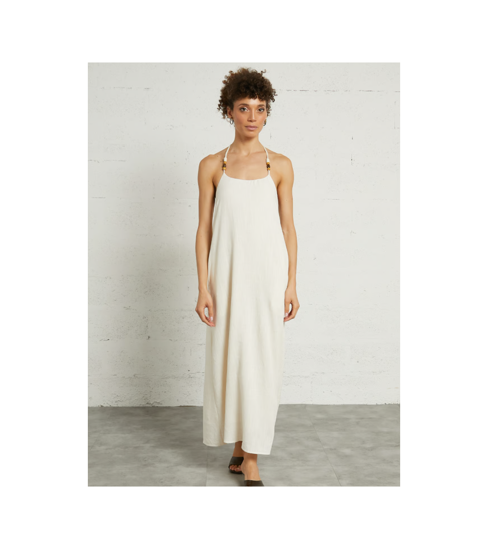 Vestido crema largo lino tirantes ajustables THE KORNER