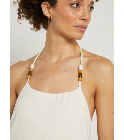 Vestido largo crema sin mangas, con tirantes ajustables. Fabricado en lino con mezcla de algodón.