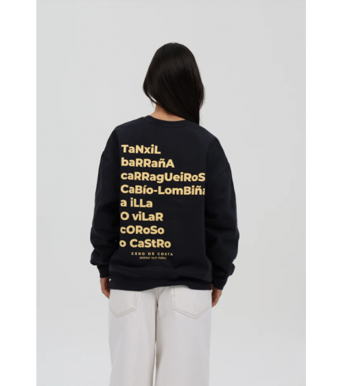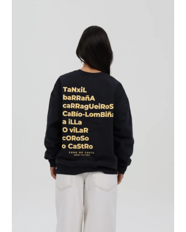 Sudadera antracita unisex Barbanza con nombres de playas Cerodecosta.