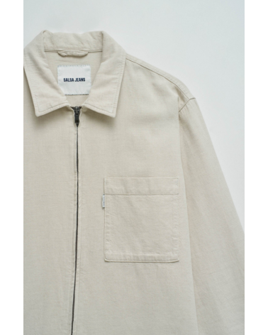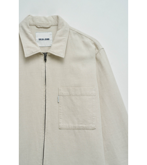 Sobrecamisa lino crudo puños abotonados cuello clásico cremallera SALSA JEANS