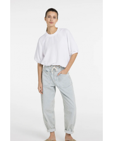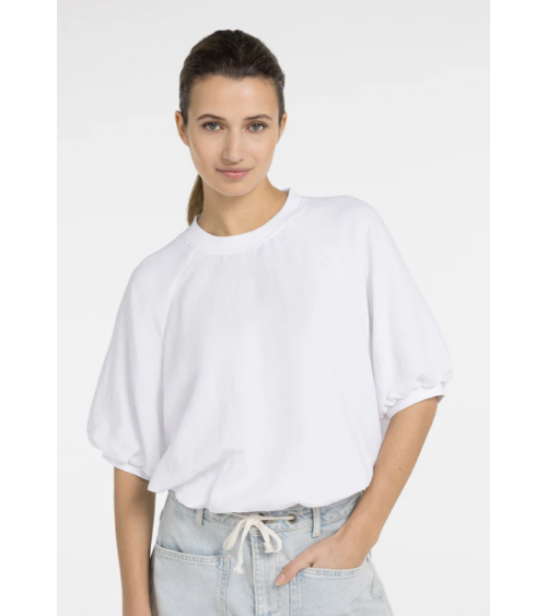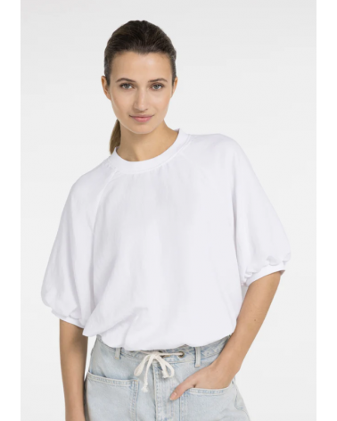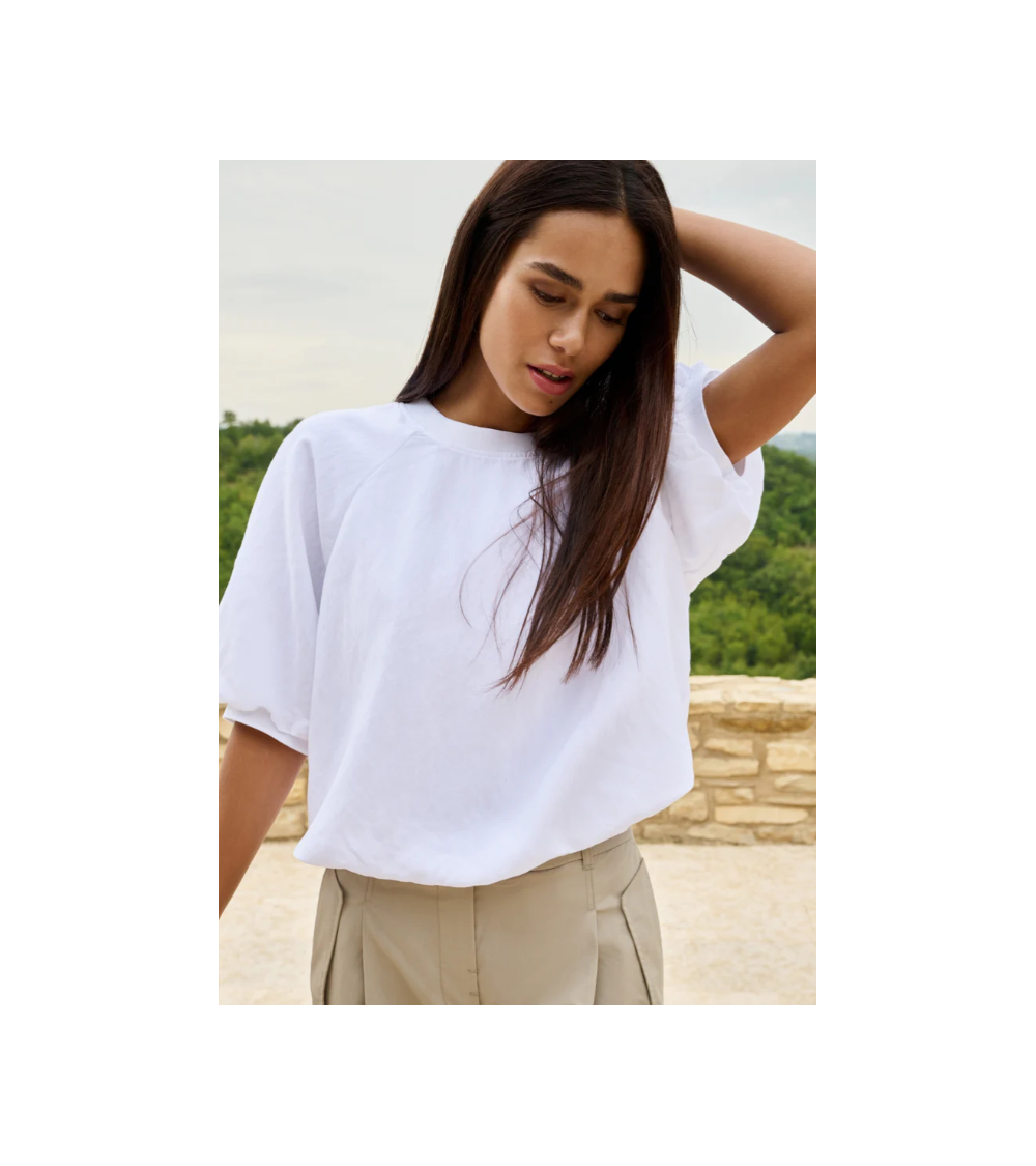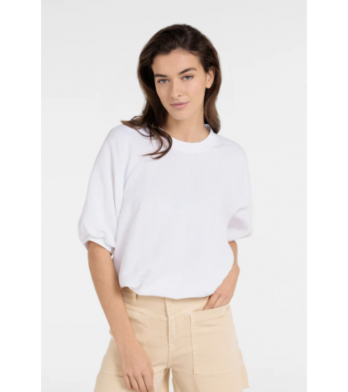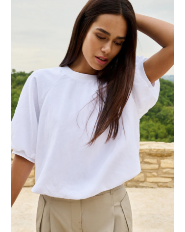 Camiseta blanca cuello redondo manga corta abullonada YAYA WOMAN