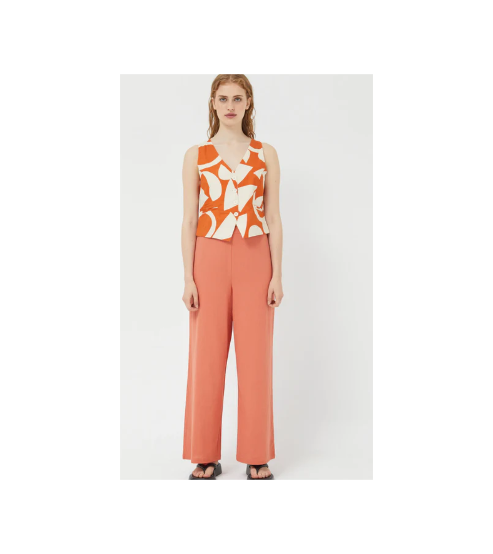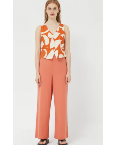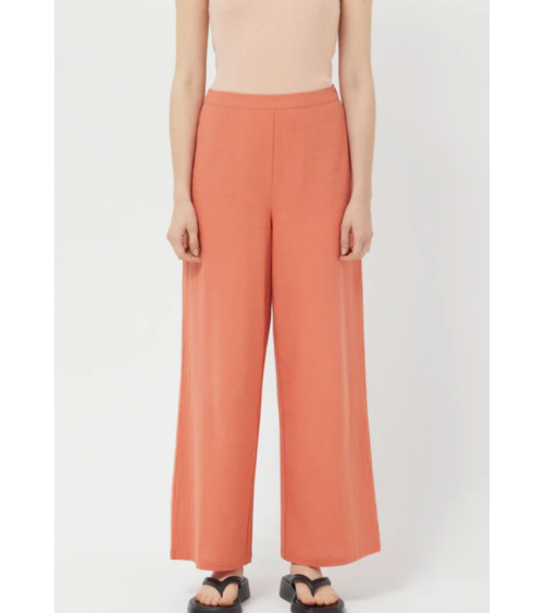Pantalón naranja cintura alta largo de tela Compañia Fantastica.