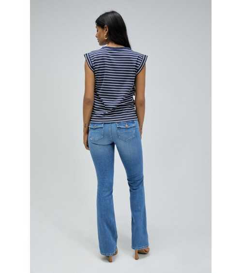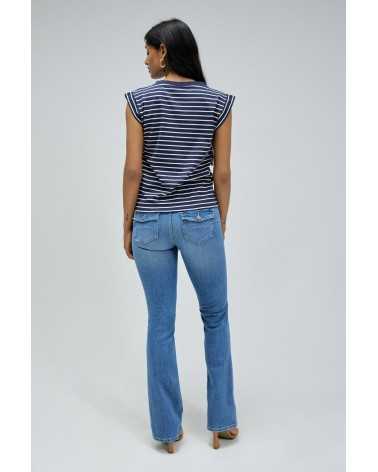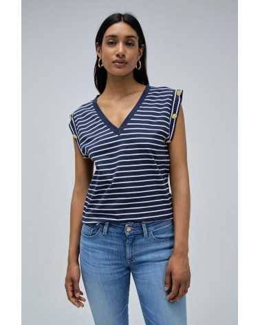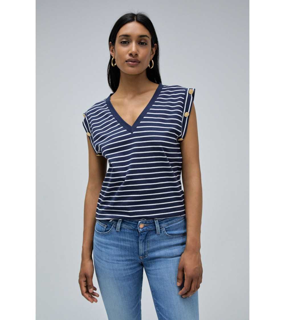 Camiseta con botones dorados en los hombros rayas marinera pico Salsajeans.