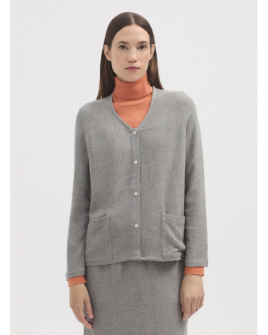 Bolsillos de plastrón y canesús con pequeño frunce.