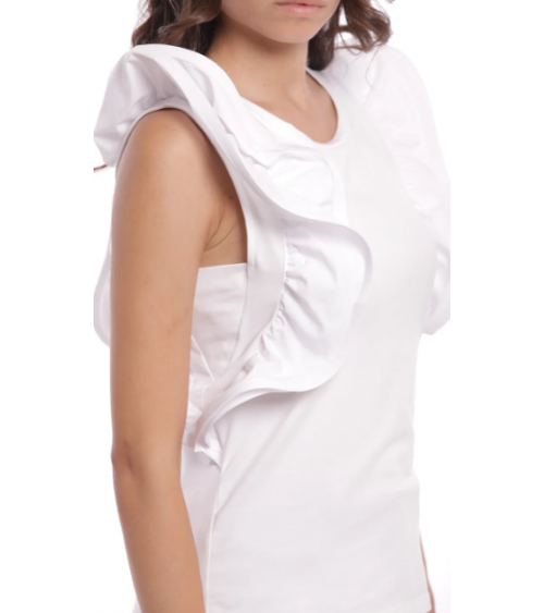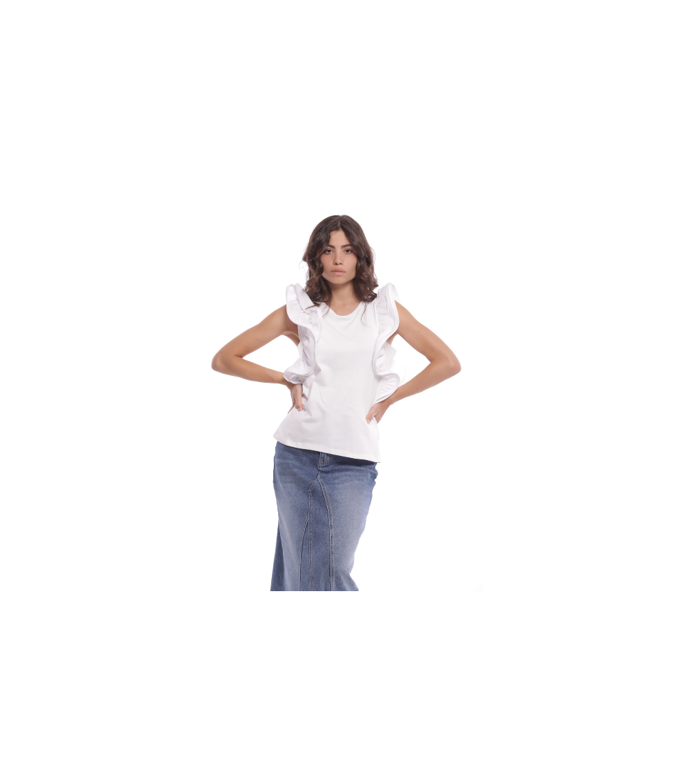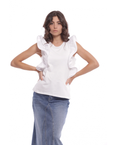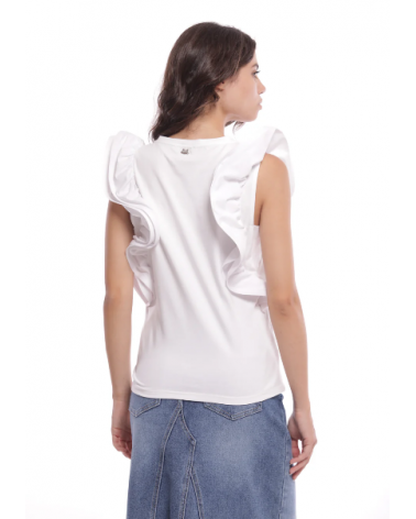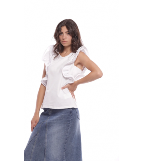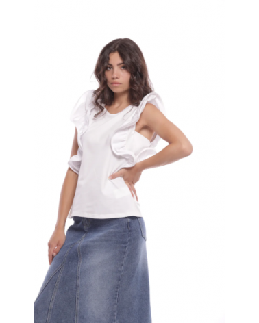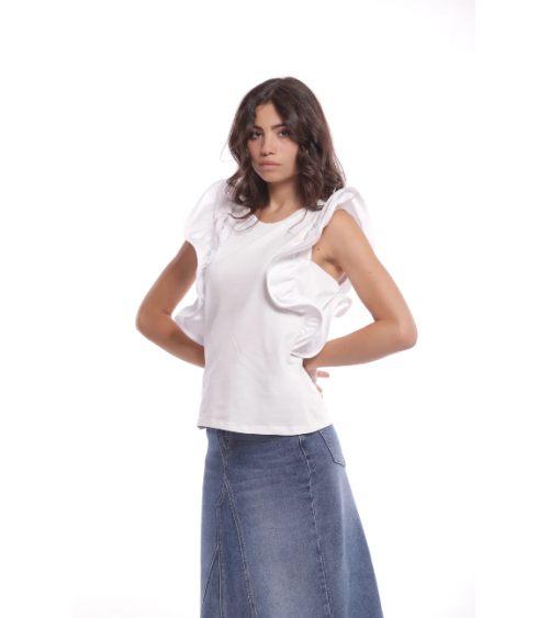 Camiseta blanca con volantes rígidos en las mangas MIMI-MUA