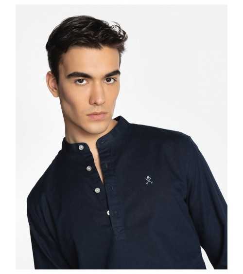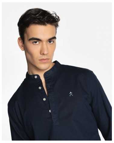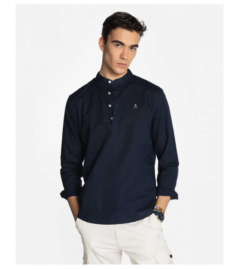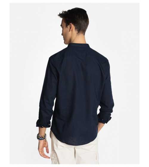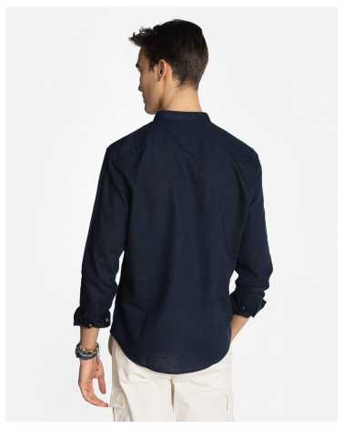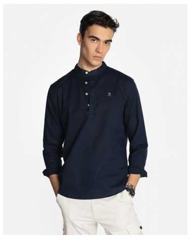 Camisa polera navy con cuello y abotonada en 4 botones en manga larga de lino Harperandneyer.