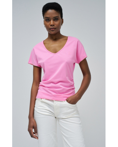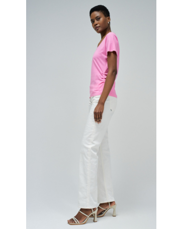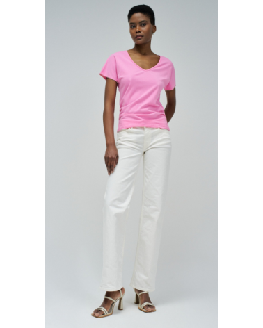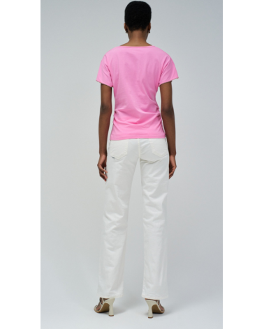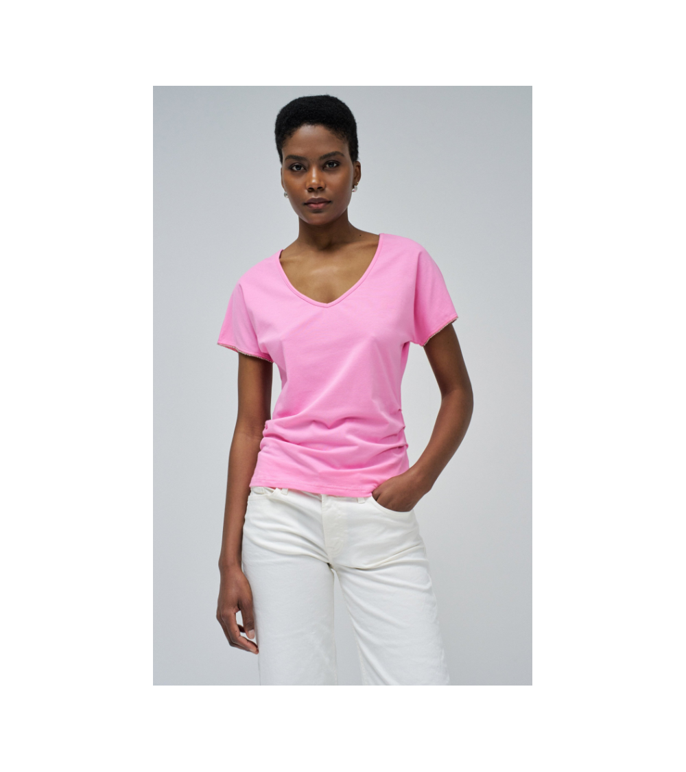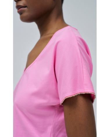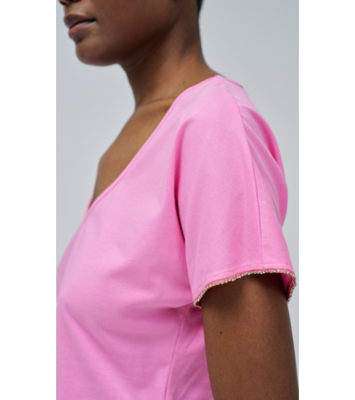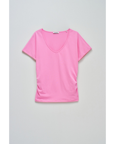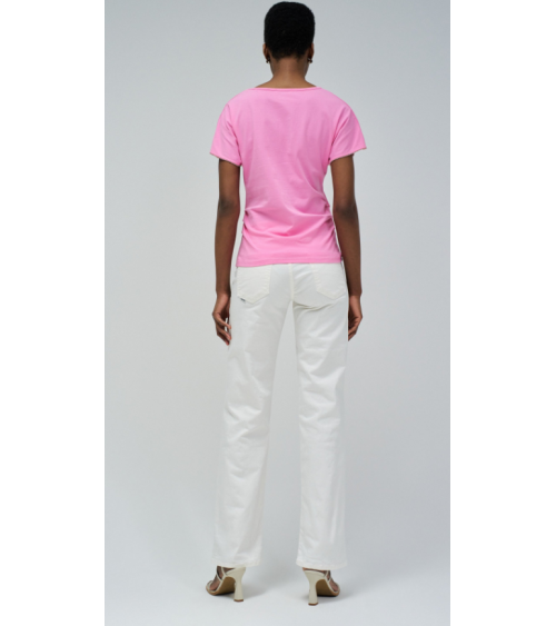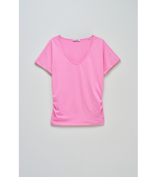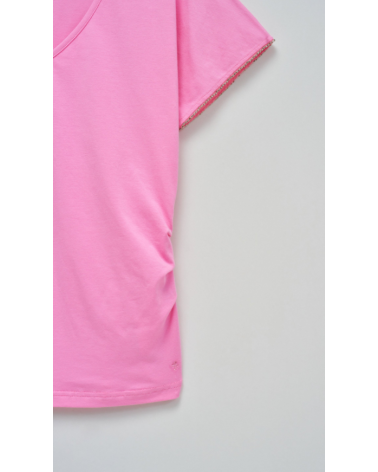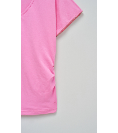 Camiseta fucxia laterales fruncidos detalle brillos mangas cortas SALSA JEANS