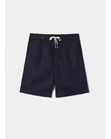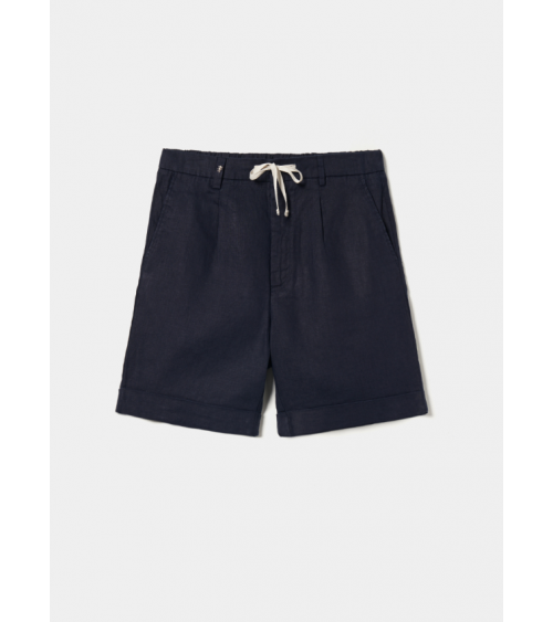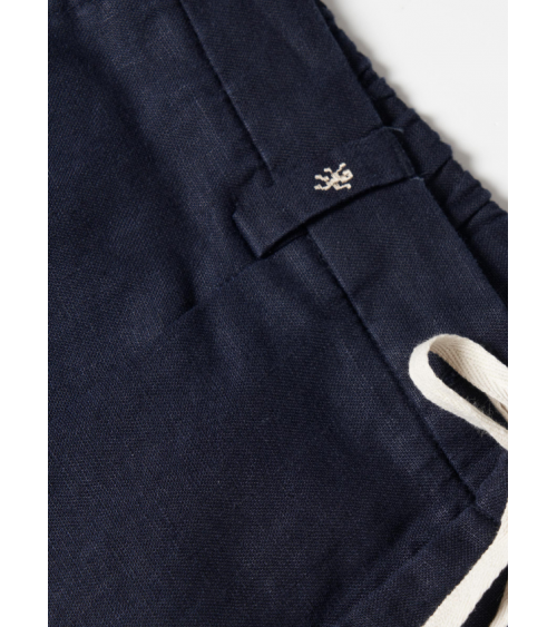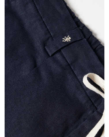 Bermuda navy con cintura elástica y cordón ajustable en tejido de lino de LION OF PORCHES