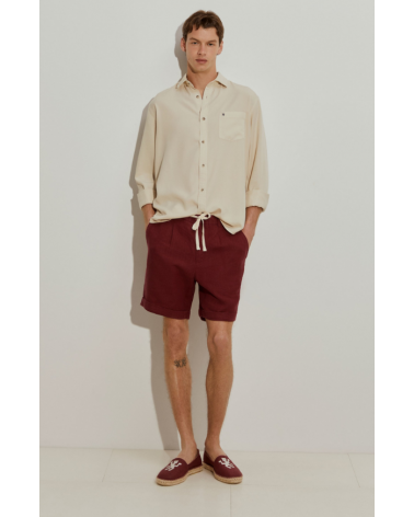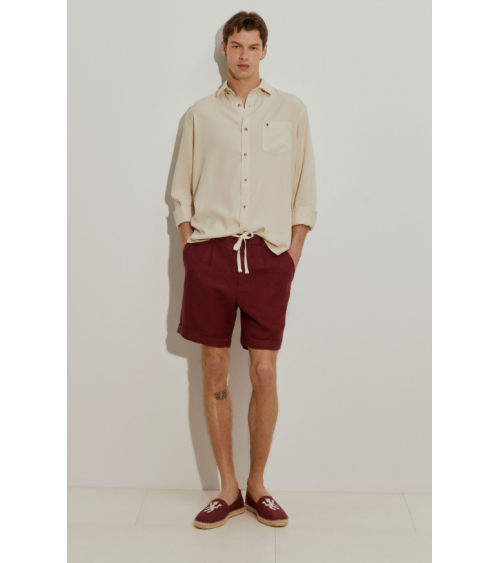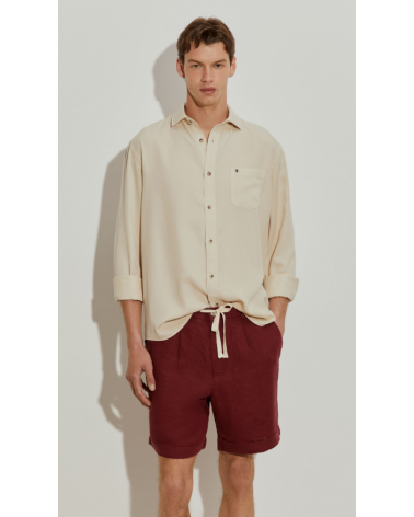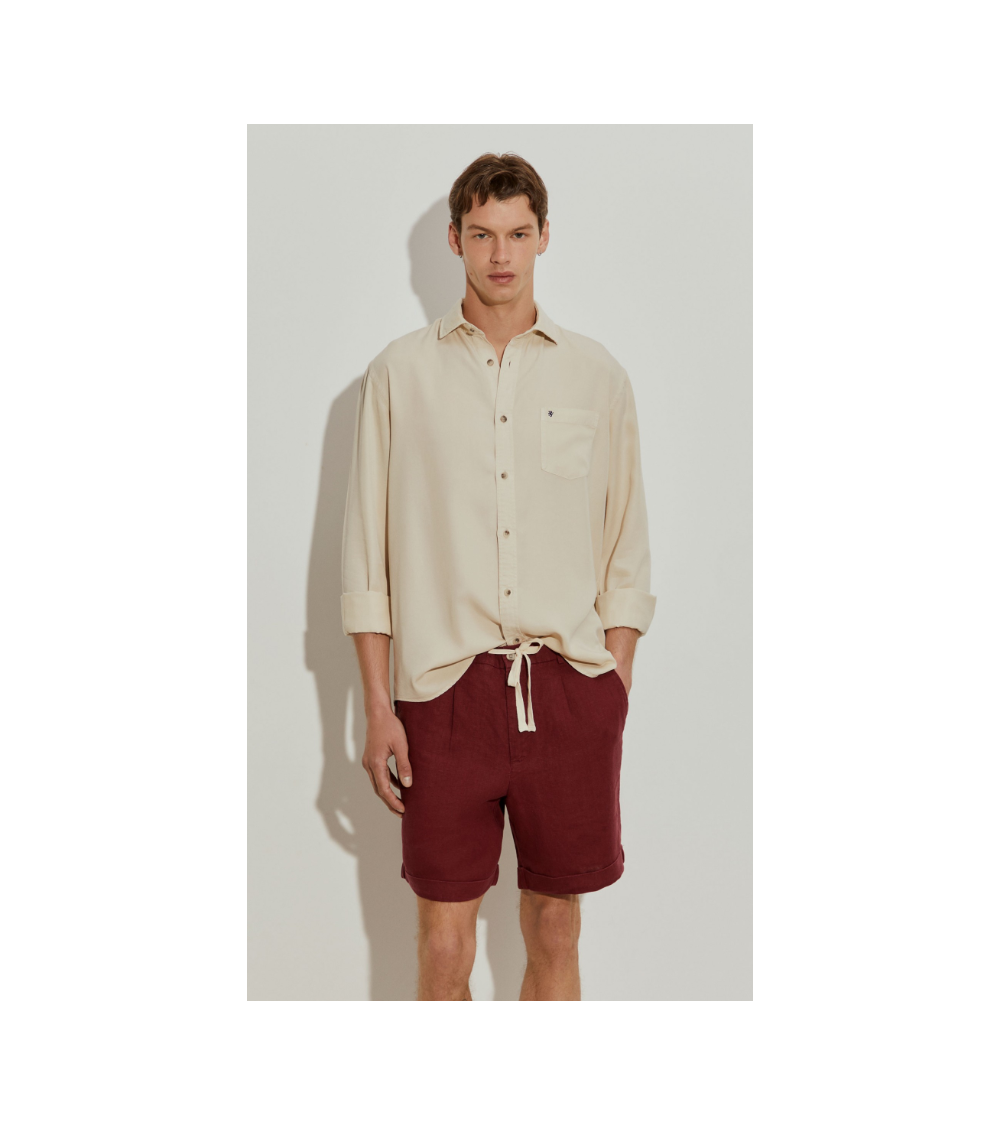 Camisa regular fit con cuello italiano. Se cierra con botones en contraste de color y tiene un bolsillo con un pequeño león de la marca bordado en el pecho. Está confeccionado íntegramente en lyocell, un material sostenible, fresco, ligero y agradable al tacto, lo que lo hace perfecto para primavera-verano.