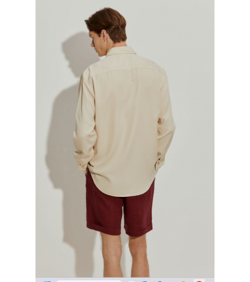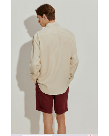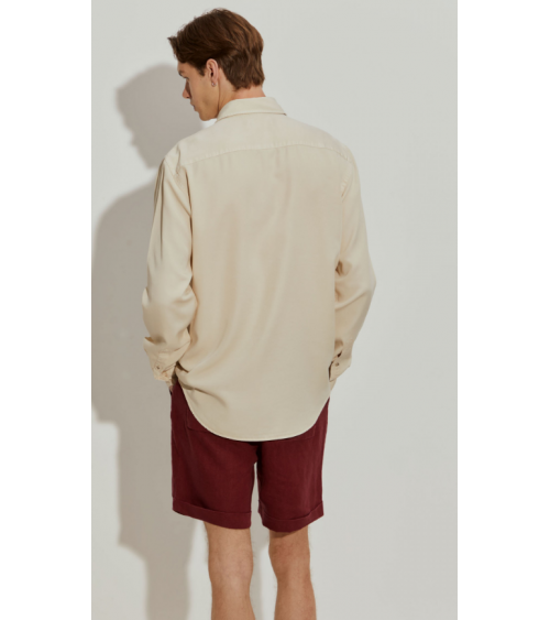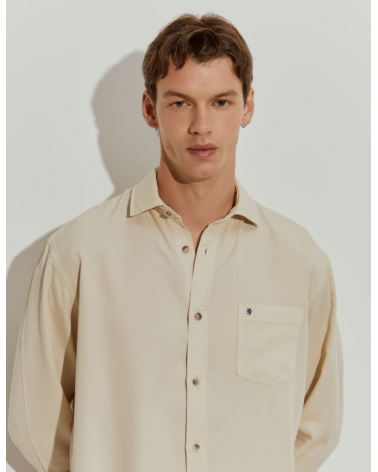 Camisa beige fluida corte recto bolsillo pecho de LION OF PORCHES. Disponible también en crudo.
